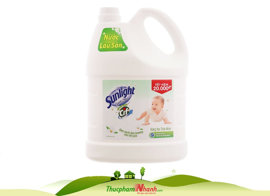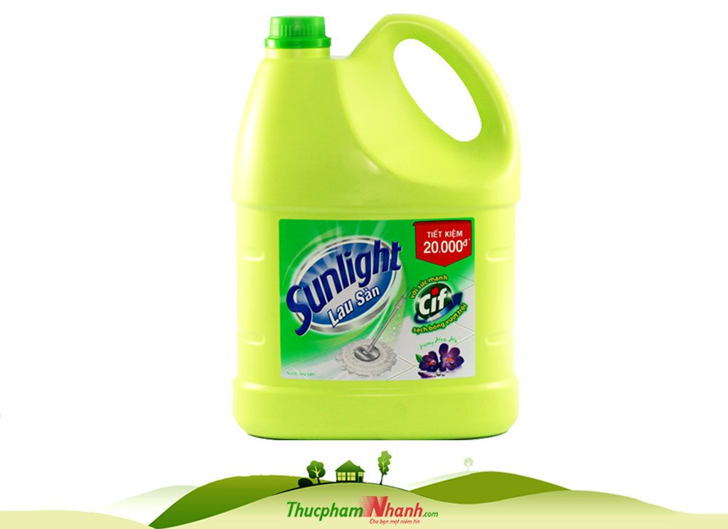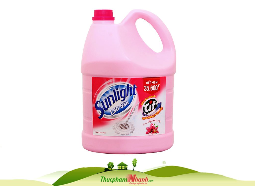 – Hòa 1 nắp đầy nước lau sàn vào nửa xô nước (loại xô 5L), nhúng ướt giẻ rồi lau sạch các vết bẩn, không lau lại bằng nước. Ngoài ra, bạn có thể tham khảo thêm sản phẩm Nước lau sàn nhà Sunlight hương hoa hạ can 3.8kg với hương thơm dễ chịu, can lớn tiện dùng, mang đến sàn nhà sạch bóng, ngát hương thơm.